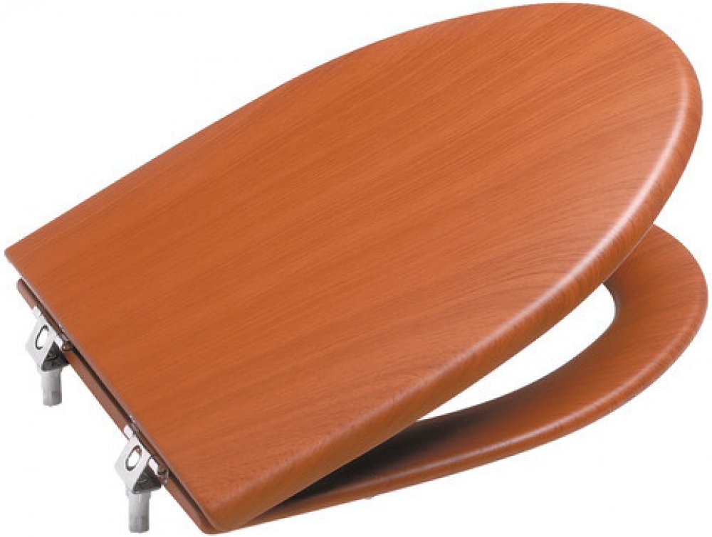 Roca America klozetové sedátko s poklopem představuje nepostradatelný doplněk klozetů. Tvar sedátka poskytuje maximální komfort a pohodli. Systém Slowclose zajišťuje pozvolný a plynulý pohyb poklopu. Povrchová úprava představující imitaci dřeva, vytváří zajímavý kontrast s bílou sanitární keramikou WC mísy.