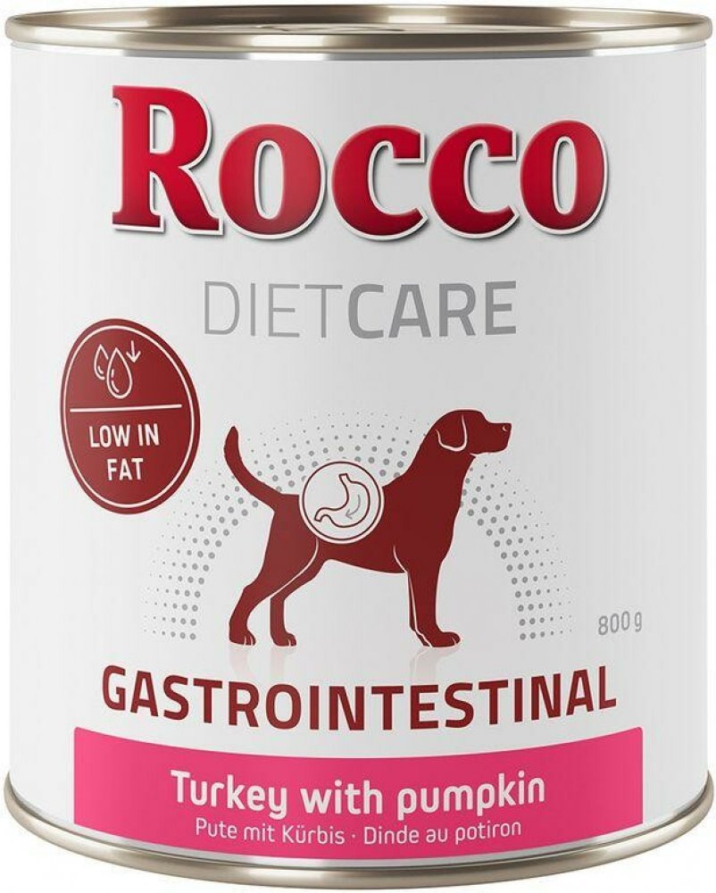 Rocco Gastro Intestinal je kompletní dietní krmivo, které bylo vyvinuto pro speciální potřeby psů trpících problémy v oblasti trávicího traktu nebo slinivky břišní. U onemocnění tohoto typu je důležitá lehce stravitelná, stravitelná potrava s kvalitními surovinami. Toto mokré jídlo může pomoci regulovat nedostatečné trávení a zmírnit problémy se střevním vstřebáváním. V druhém případě ztrácí střevo důležité živiny a stopové prvky z potravy v důsledku průjmu nebo zvracení. Rocco Diet Care Gastro Intestinal to dokáže kompenzovat zvýšeným obsahem elektrolytů