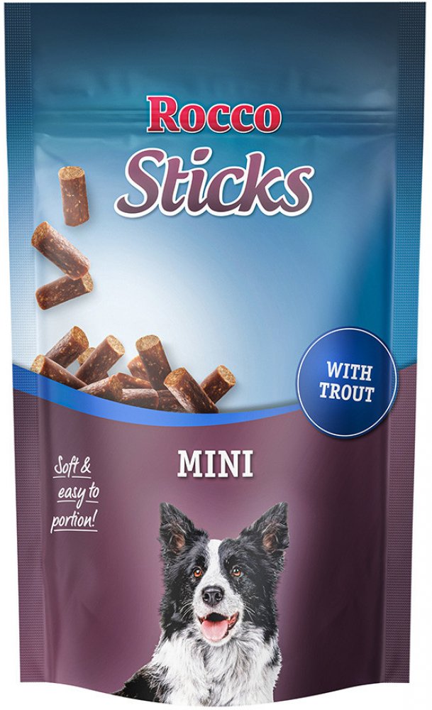 Tyčinky Rocco Sticks Mini a Rocco Sticks Mini Junior jsou ideální svačinou pro malé i velké! Šťavnaté a lahodné tyčinky jsou předem rozděleny na malé kousky, takže jsou ideální na cesty. Buď jako odměna za úspěšný výcvik, nebo jako malý pamlsek mezi jídly. Dospělé varianty jsou předem rozporcovány na kousky dlouhé přibližně 2,5 cm, zatímco druhy pro mladší psy jsou dlouhé přibližně 1,0 cm. Rocco S...