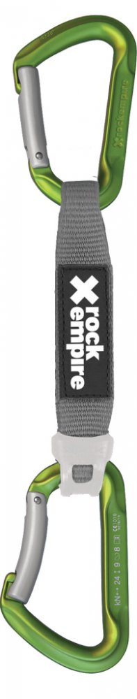 Horní víceúčelová karabina s plným zámkem. Spodní zahnutá karabina se systémem Keylock pro plynulé cvakání a vycvakávání lana.