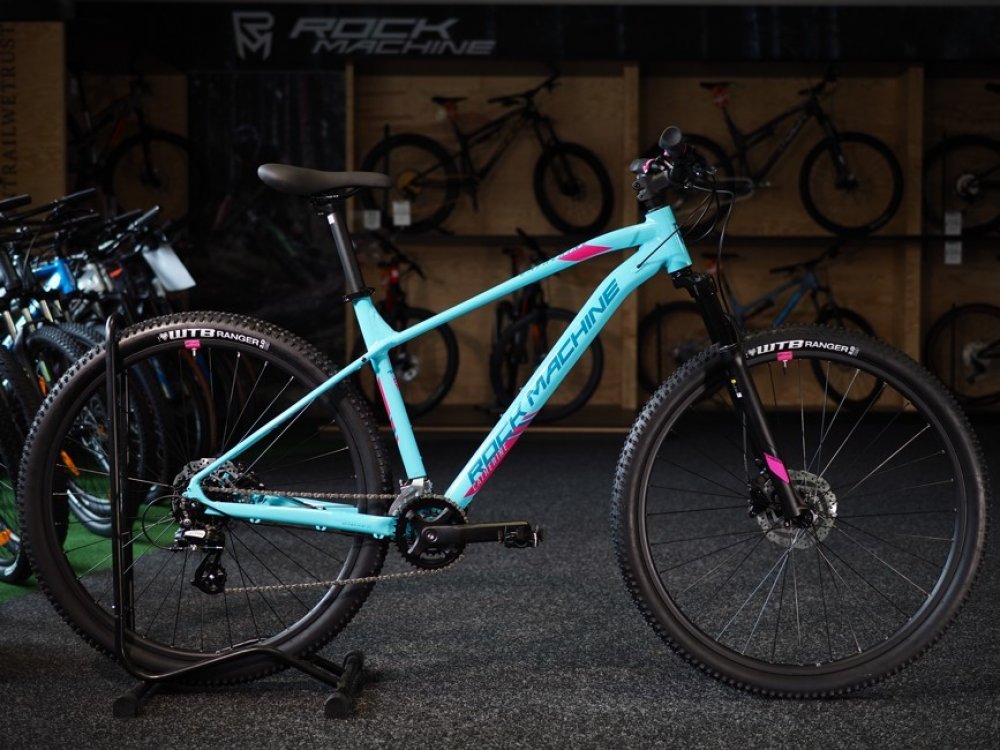 Rock Machine 14.4 kg horská Shimano HB-TX505 / FH-MT200-B, 32 děr, Center-Lock Zoom 525 AMS, 100 mm hliníkové s odpruženou vidlicí dámská 2022 100 mm 2 x 7 lehký terén rekreační těžší (nad 14 kg) klasický rám XC (80–100 mm) hydraulické kotoučové – spolehlivé za mokra i v blátě Hliník – odolný, nenáročný na údržbu Shimano ST-EF505 2x7 / S-Ride 2x7 Shimano ST-EF505 / BR-MT200 Shimano Altus FD-M315-TS, Top Swing, Dual-Pull Shimano CS-HG200-7, 12-32T Shimano Altus RD-M310 / S-Ride FSA, semi-integrované, 1-1/8" ONE1 TDS-C342 Al, průměr 31,8 mm, délka 45/60 mm, +3° ONE1 Al, 9° prohnutí, zvýšení 6°/25 mm, Ø 31,8 mm ONE1 Catherine VELO Ergo Grip