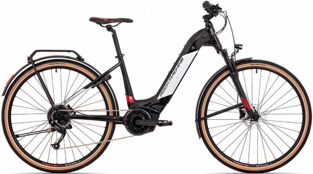 Rock Machine trekking/cross dámská 2022 100 km středové integrované na rámu Bosch 80 mm kotoučové hliníkové Bosch Active Line Plus 50 Nm
