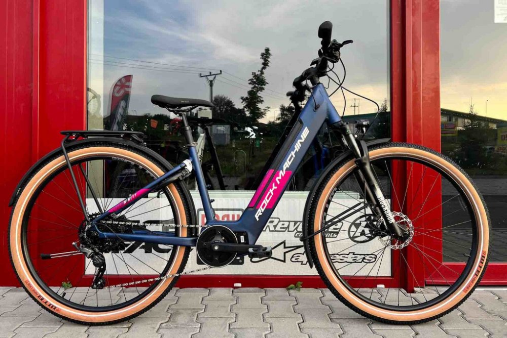 Rock Machine trekking/cross dámská 2022 100 km středové integrované na rámu odpružená přední vidlice 100 mm kotoučové hliníkové Dapu 250S 90 Nm