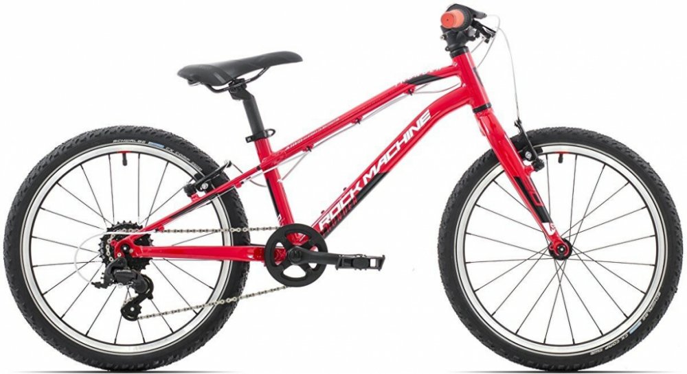 "Rock Machine Thunder 20 je lehká rychlá 20“ s pevnou vidlicí a véčkovými brzdami pro zábavnou jízdu v lehčím terénu. Kolo jsme vybavili lehkými výplety, které usnadňují rozjezd a výrazně odlehčují celé kolo, což vaši malí jezdci ocení v kopcích. Thunder 20 jsme vybavili novým řazením MicroSHIFT s jednoduchou obsluhou a kvalitními plášti Schwalbe s reflexním proužkem, aby byli mrňousci lépe vidět.