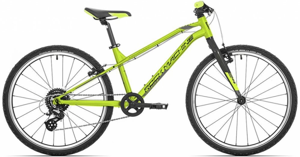 Rock Machine 9.7 kg horská ONE1 KTA55F (24H, M9×100), ONE1 KTAZER (24H, M10×130) Al Custom Tubing, pevná hliníkové pevná unisex 2022 1 x 8 24" (cca 130–145 cm) lehký terén rekreační lehké (do 11 kg) klasický rám mechanické kotoučové – dobrý výkon, snadný servis Hliník – odolný, nenáročný na údržbu Shimano Altus SL-M315-8, RapidFire Plus Tektro V-brake Shimano CS-HG31-8, 11-34T Shimano RD-M310-L CH290TBW, 1-1/8\" ONE1 Al, 35 mm, ø 25,4 mm, 15° ONE1 Al, 600 mm, 10° prohnutí, ø 25,4 mm ONE1 Junior VELO VL-G311