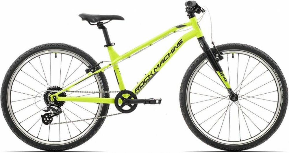 Rock Machine 9.7 kg trailová One1 KTA55F přední, One1 KTAZER zadní Alloy Custom Tubing, pevná hliníková hliníkové pevná dětská 2023 1 x 8 24" (cca 130–145 cm) zpevněné cesty rekreační lehké (do 11 kg) klasický rám blatníky, stojan ráfkové – lehké, jednoduché, levná údržba Hliník – odolný, nenáročný na údržbu Shimano Altus SL-M315-8R, 8 r. Tektro Shimano Altus CS-HG31-8, 11-34T Shimano RD-M310-L CH290TBW, 1-1/8" One1 Alloy, ø 25,4 mm, d. 35 mm, 15° One1 Alloy, 10° backsweep, š. 600 mm One1 Junior Velo VL-G311