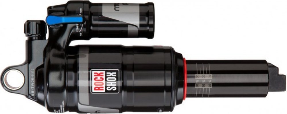Tlumení obstarává patentovaný systém Rapid Recovery nabízející dvě polohy komprese (open a pedal), regulaci odskoku a samozřejmě možnost regulaci tlakem vzduchu. Nabízen je v délce 216 mm.