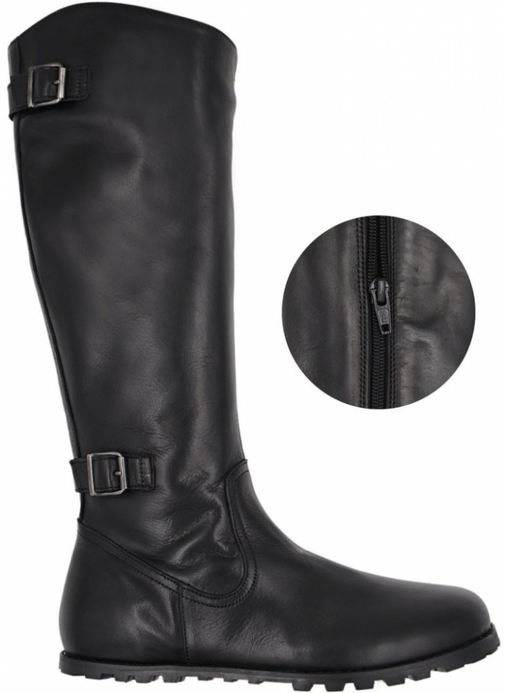 Vysoká bota ve stylu jezdeckých kozaček se zipem až k podešvi pro snadné nazouvání.