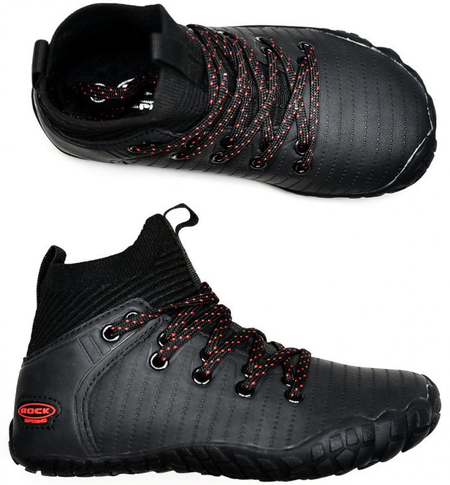 Podešve jsou protiskluzové, pružné a velmi lehké s naším autentickým designem ROCK SPRING.