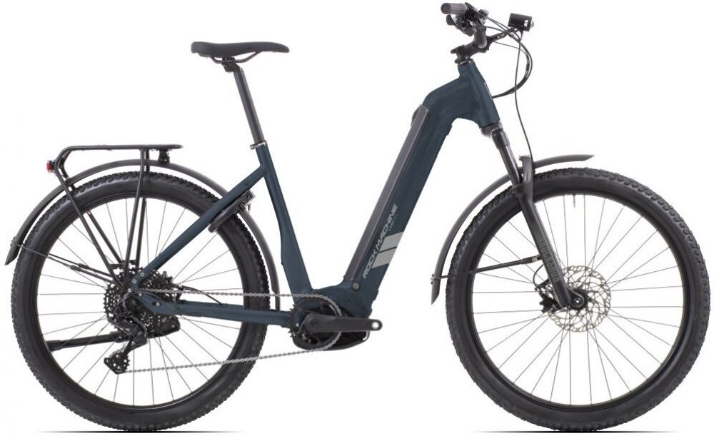 Rock Machine městská 2025 180 km integrované na rámu Bosch odpružená přední vidlice 100 mm hliníkové Bosch Performance Line CX Smart System 85 Nm