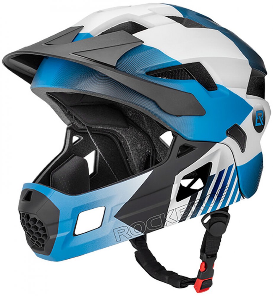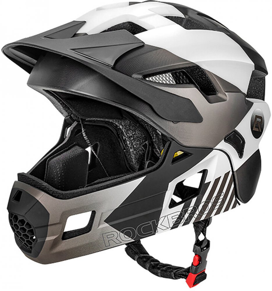 Dětská cyklistická helma Rockbros TS-61 10110061005 s odnímatelnou bradou, velikost S (48-54) - šedá Dětská výklopná helma Rockbros TS-61 je model 2 v 1, který lze díky odnímatelné bradě rychle přestavět z plné ochrany pro sjezd/downhill na lehčí enduro nebo horskou cyklistickou verzi. Je ideální pro mladší jezdce, kteří potřebují solidní ochranu pro rekreační a terénní jízdu. Je vybavena 12 větra...