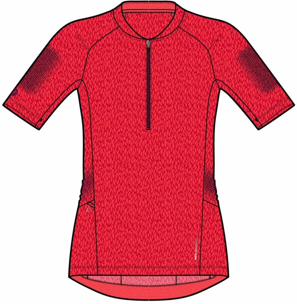 Dres určený až na 4h vyjížďky na horském kole v teplém počasí. Rovný střih a zip u krku pro odvětrávání. Dvě vodoodpudivé zapínací kapsy na smartphone a klíče, elastická kapsa na cereální tyčinky a kapesníky. Určen pro: ženy.