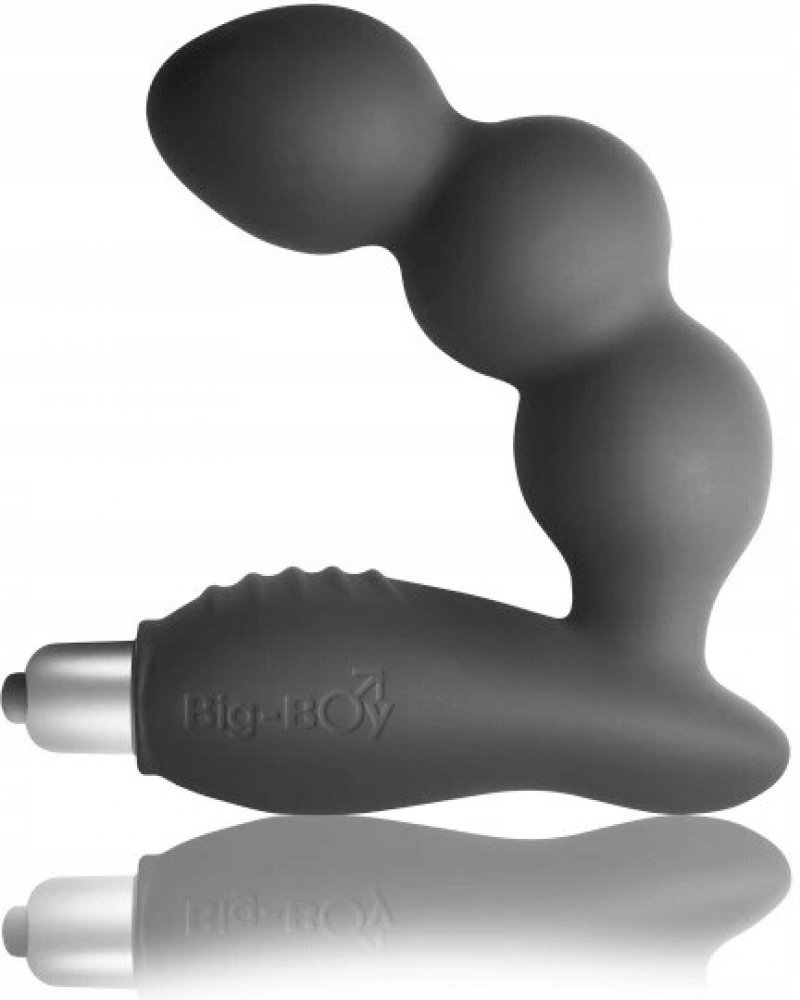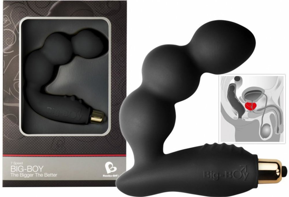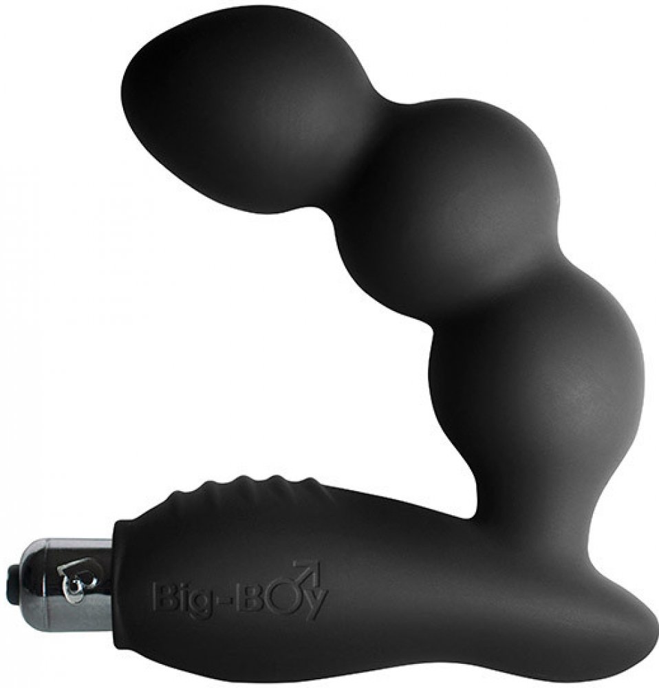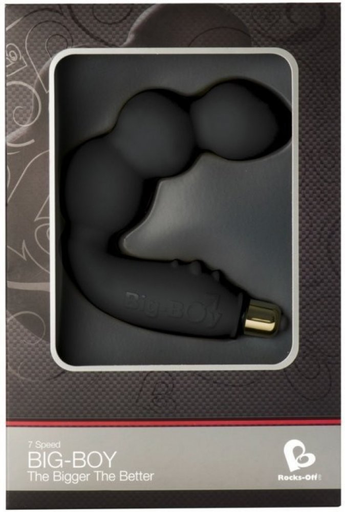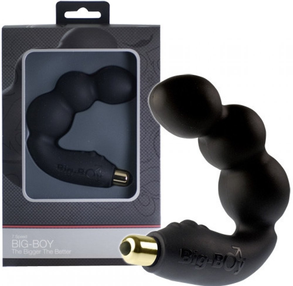 BIG BOY je vibrátor z masivního kusu silikonu, jehož struktura je natolik pevná, že velmi dobře vede vibrace od vibrační patronky až do posledního kousku celého těla vibrátoru. Tvar je určen pro náročnější uživatele, kteří se již pouštějí do větších průměrů. Zahnutý konec dosáhne přesně prostoru u prostaty a současně výstupky na rozšířené části vibrátoru se opřou o hráz mezi šourkem a anusem. Tím dochází k vibračním účinkům na prostatu z obou stran. Masturbace s použitím této pomůcky je pak velmi bouřlivá a účinná.