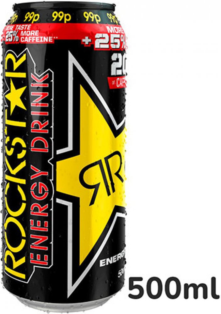 Složení: voda, cukr, dextróza, kyselina (kyselina citronová), oxid uhličitý, taurin (0,4 %), regulátor kyselosti (citronany sodné), aroma, aroma: kofein (0,03%), glukuronolakton, barviva (amoniakový karamel a riboflaviny), extrakt z ženšenu (0,01 %), extrakt z guarany (0,01 %), inositol, niacin, vitamin B6, vitamin B12
