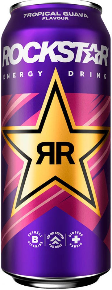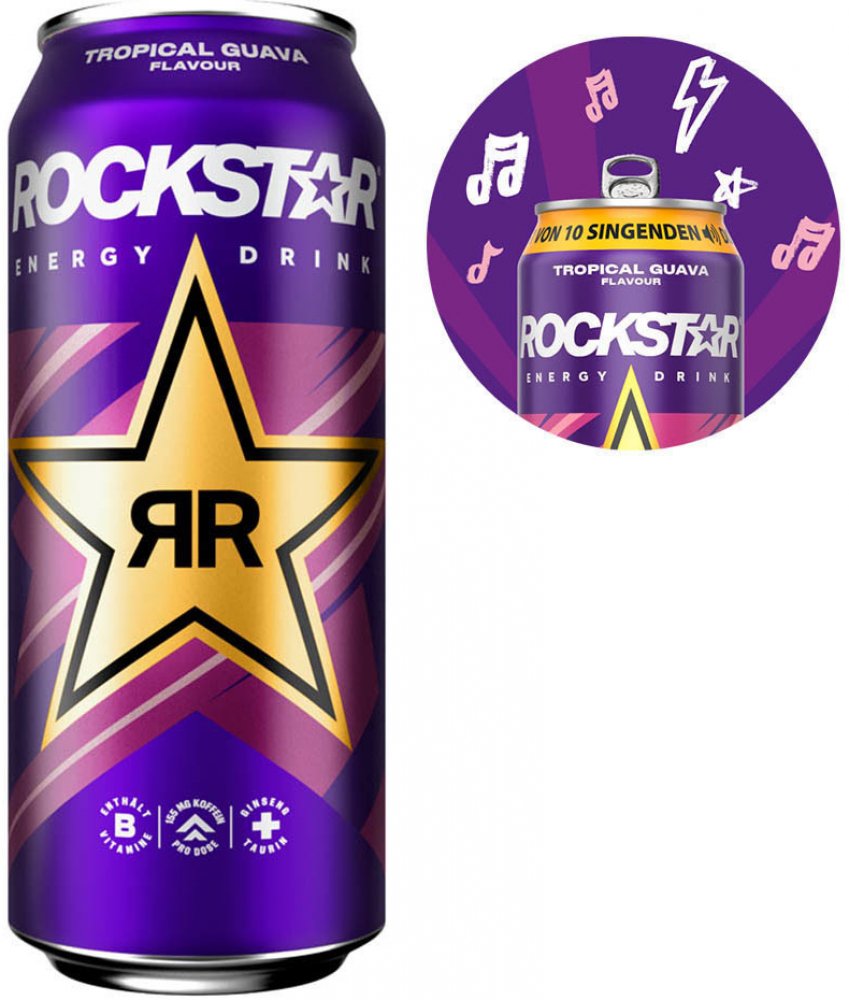 Energetický nápoj Rockstar s příchutí guavy v limitované edici Glücksgefühle festival.