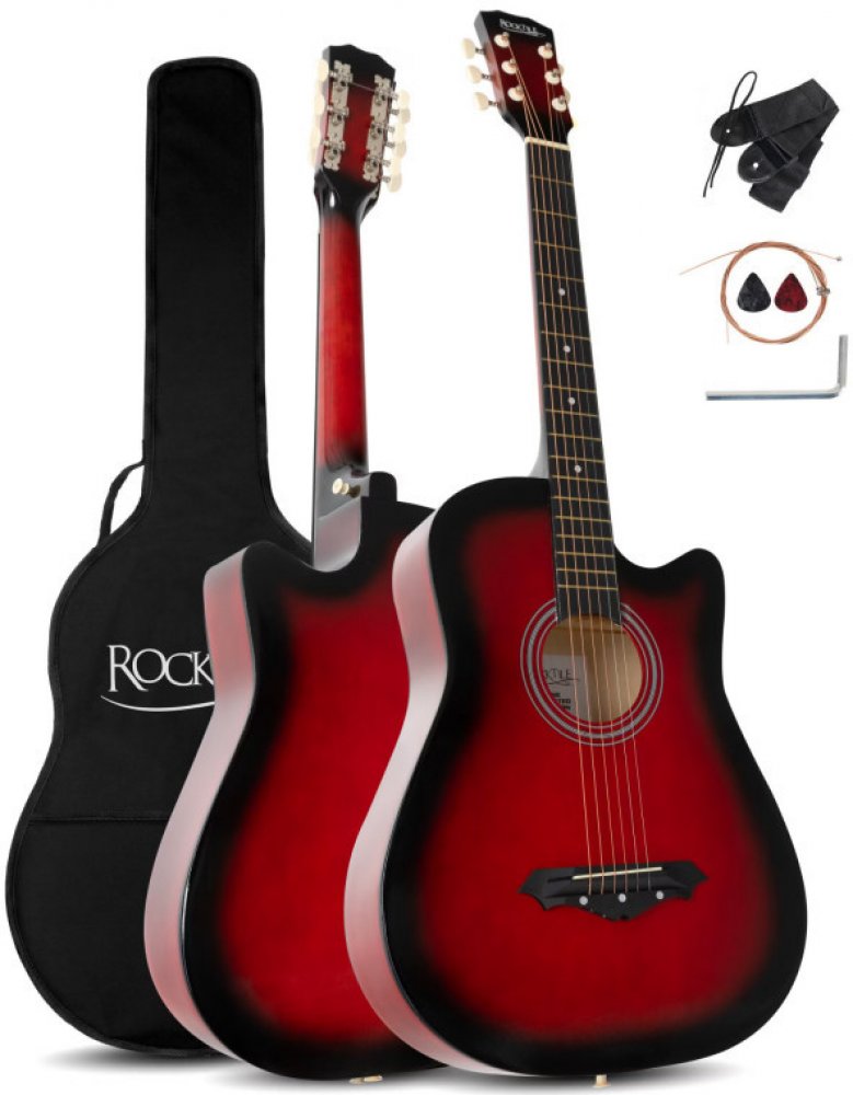 Rocktile WSD-5C-RDB Slim Line SET Redburst Kytarový set obsahující westernovou kytaru Rocktile WSD-5C-NT, obal, popruh a trsátka. Kytary Slim Line od Rocktile se svým o něco menším tělem nabízí perfektní podmínky pro lidi menšího vzrůstu nebo ty, kteří zkrátka hledají kompaktnější nástroj. Nejen, že se mírně zmenšila délka a šířka, hloubka je ta