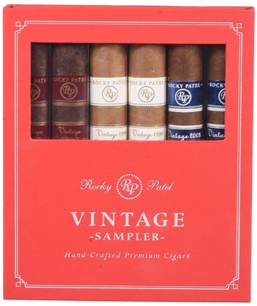 Toto balení obsahuje tři druhy doutníků. 2x Rocky Patel Vintage 1990 Robusto, 2x Rocky Patel Vintage Connecticut 1999 Robusto a 2x Rocky Patel Vintage 2003 Cameroon Robusto. RP Vintage 1990 Robusto: středně silný doutník, s krémovou chutí kakaa, ořechů a cedru. Krycí list: Equador RP Vintage 1999 Robusto: lehký až středně silný doutník má krémovou chuť ovoce, pepře, cedru a koření. Krycí list: Connecticut. RP Vintage 2003 Robusto: má krémovou chuť kakaa, ořechů a cedru. Krycí list: Cameroon. Balení obsahuje 6 kusů doutníků