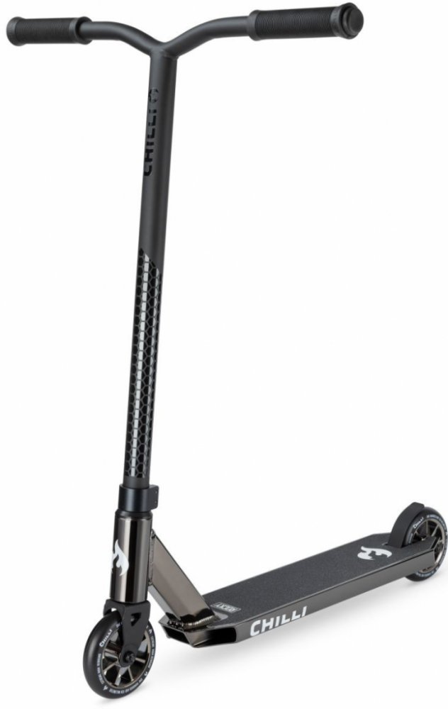 Chilli Rocky black neochrome je skvělá volba pro všechny, kteří chtějí začít s jízdou na freestyle koloběžce ve velkém stylu.