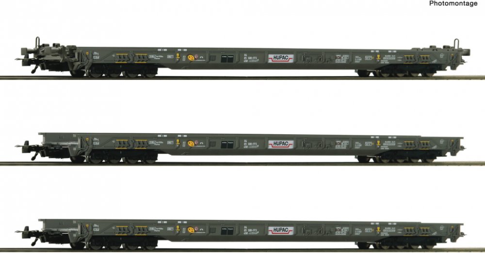 Roco 3-dílná sada nízkopodlažní vagóny pro přepravu nákladních automobilů HUPAC 6600092