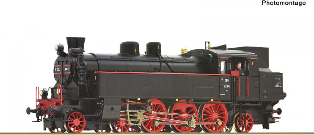 Parní tendrová lokomotiva řady 77 rakouských drah. Model vybaven digitálním dekodérem se zvukovým modulem. Motor se setrvačníkem, LED osvětlení závislé na směru jízdy. Kinematika krátkého spřáhla se šachtou dle NEM 362. Minimální poloměr oblouku: 358 mm. Nevhodné pro děti do 15 let.