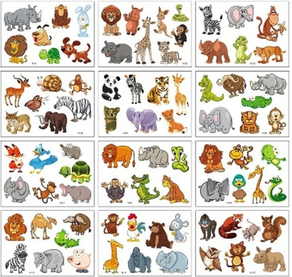 Dočasné tetování - tetovací obtisky ze série Zvířátka nabízí 12 různých variant. Tetování odstraníte mýdlem nebo dětským olejíčkem.