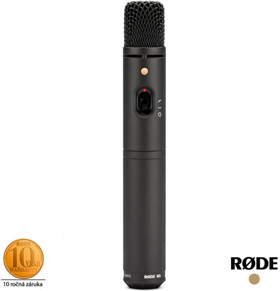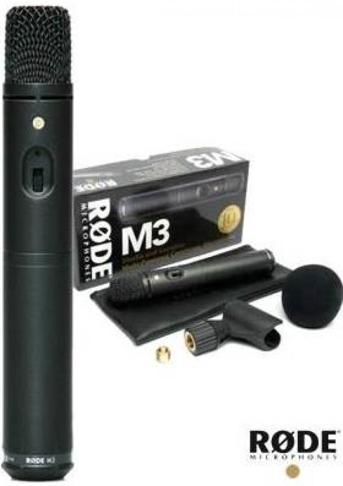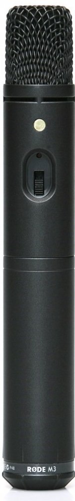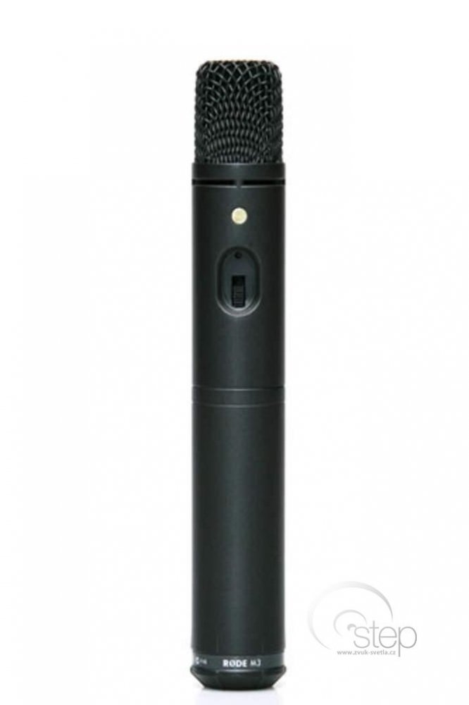 Kondenzátorový mikrofon M3 je vysoce univerzální kondenzátorový mikrofon s velmi nízkou hladinu šumu a kardioidní charakteristikou. Je napájen 9V baterií která je umístěna v těle mikrofonu, nebo jej můžete napájet přes Phantom 48V. Na těle mikrofonu naleznete vypínač pro hipass filter a také LED diodu signalizující stav on/off. Technická specifikace• Délka mikrofonu 225 mm• Možnost napájení – baterie 9V• Phantomové napájení 24 – 48 V• Životnost baterií až 200 hodin• Odstup signálu od šumu 73 dB (A-weighted)• Maximální SPL 142 dB• Citlivost -40 dB• Konektor XLR-3 pinový