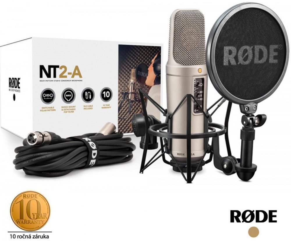 Kondenzátorový mikrofon NT2-A Studio Solution je rychlý způsob, jak rozšířit vaše studio o kvalitní nahrávání a to zejména vokálů. Obsahuje totiž vše potřebné - profesionální studiový mikrofon, shockmount s pop filtrem a propojovací XLR kabel. Pokud tedy máte ve studiu mikrofonní vstup s fantomovým napájením a stativ, nic dalšího už nepotřebujete. Součástí tohoto setu je také praktická brašnička na mikrofon a instruktážní DVD v angličtině, ve kterém hudební producent John Merchant vysvětluje různé nahrávací techniky a využití mikrofonu NT2-A ve studiu. Mikrofon je velmi variabilní, lze ho použít na všechny akustické nástroje.