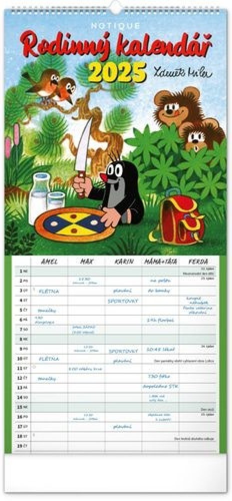 Popis : Je pro vás rodina na prvním místě? Zorganizujte všechny rodinné aktivity v praktickém plánovacím kalendáři s klasickými ilustracemi Krtečka od Zdeňka Milera. Kalendář obsahuje české kalendárium a samostatný plánovač aktivit pro až pět členů domácnosti.Druh sortimentu : Kalendář, Název : Rodinný kalendář 2025 - nástěnný kalendář, Jazyk : Čeština,