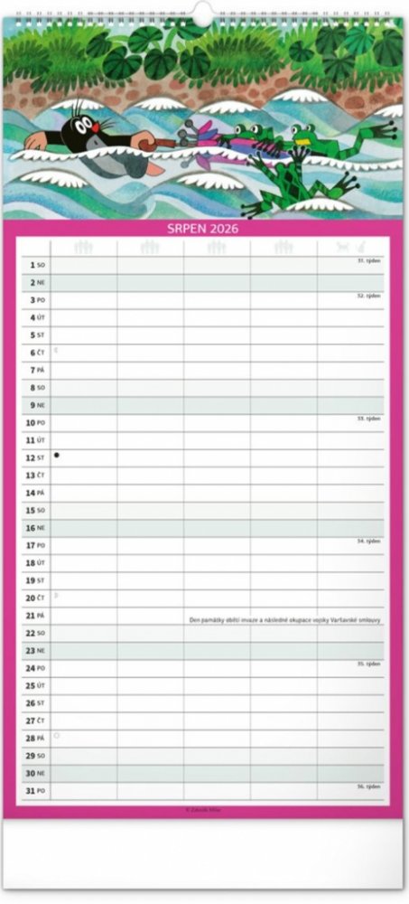 české kroužkové Presco Group dětské nástěnné ilustrované měsíční 14 2026 pro kluky a holky Krteček