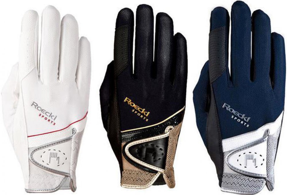 Lehké a prodyšné letní rukavice Roeckl Madrid, které jsou vyrobené z Micro Mesh materiálu. Protiskluzový materiál na celé spodní straně dlaně a mezi prsty, v místech otěží. Zapínání na suchý zip na zápěstí. Touch Screen materiál na prstech pro ovládání mobilu i během ježdění. S logem Roeckl. Barva: modrá (stříbrno-bílé kontrastní zdobení).