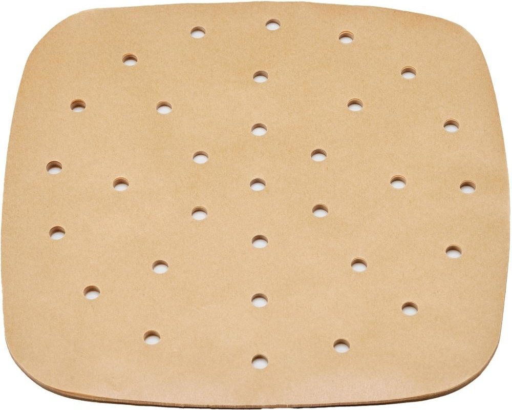 Nepřilnavé papíry do horkovzdušné fritézy, 100 kusů v jednom balení, z nepřilnavého voděodolného materiálu, vhodné do teplot do 220 °C, rozměry 20 × 20 cm, hnědá