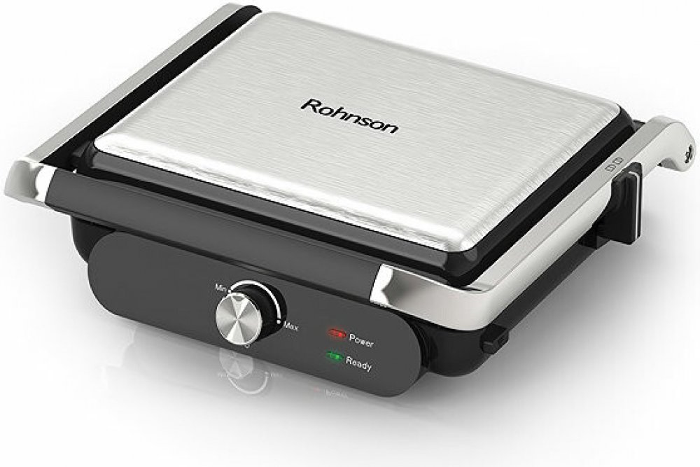 kontaktní gril s příkonem 2000 W, grilovací plocha 644 cm2, počet grilovacích ploch 2, nepřilnavý povrch a odkapávací nádoba, materiál grilovací plochy keramika, materiál grilu litina, hmotnost 3,2 kg (R-2345)