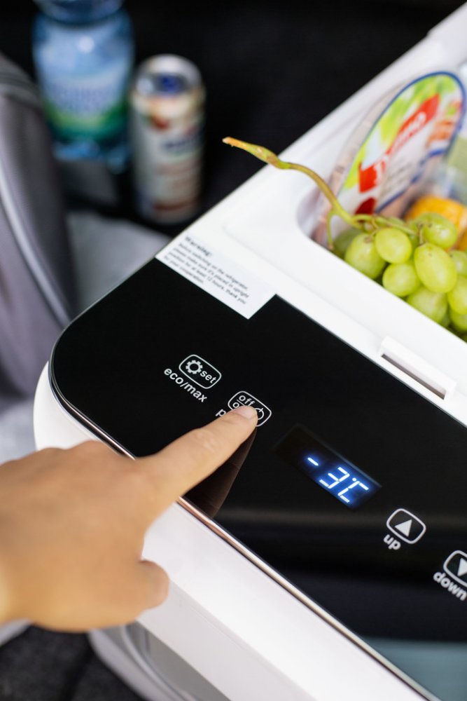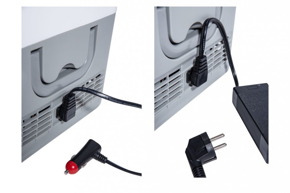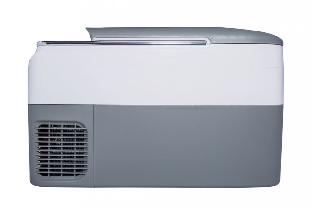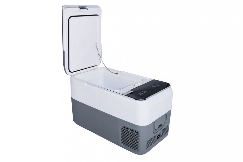 Vlastnosti: - Přenosná kompresorová autochladnička ve stříbrném a bílém desig