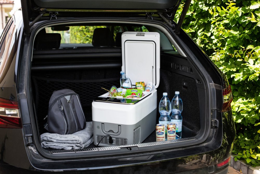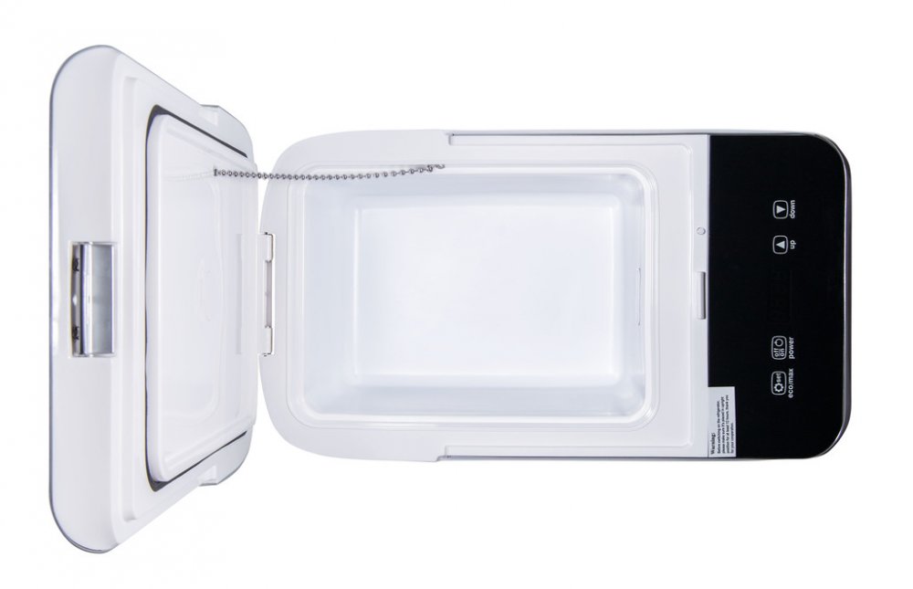 Přenosná kompresorová autochladnička ve stříbrném a bílém designu