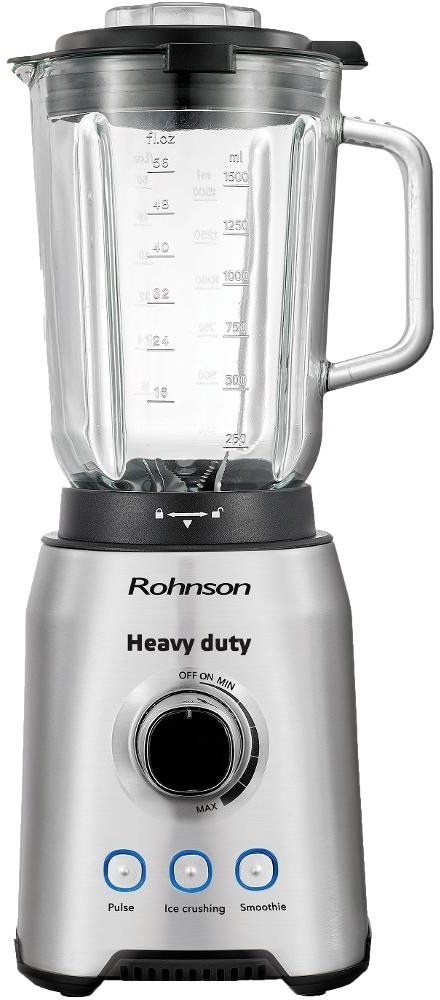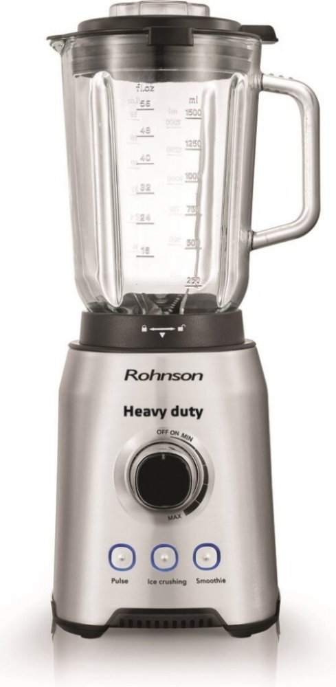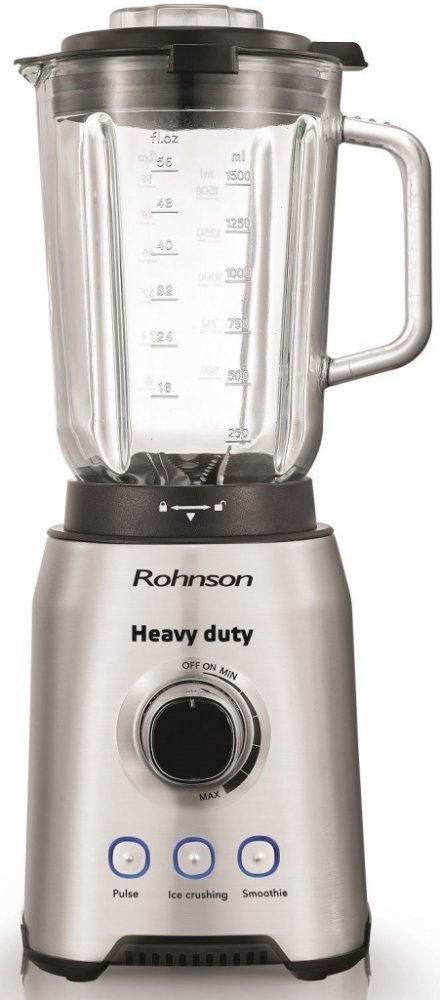Stolní smoothie mixér Rohnson R-583 Heavy Duty dokáže během několika málo sekund vyrobit z čerstvého ovoce, zeleniny a mléčných výrobků lahodný a zdravý koktejl. Spolehlivě umixujeme vše, co potřebujete při výkonu až 1400 W. Je vybaven 1,5 litrovou skleněnou nádobou s víkem a nerezovým 6-Cepelova titanovým nožem. Disponuje plynulou regulací otáček, funkcí drcení ledu, smoothie tlačítkem a pulzním tlačítkem. Mixér se snadno a bezpečně ovládá. Gumové podložky poskytnou pro komfortní práci potřebnou stabilitu. Díky elegantnímu nerezovému provedení s modře podsvícenými tlačítky se mixér R-583 Heavy Duty stane moderním doplňkem každé kuchyně. Je užitečný a pomocník, jehož funkce ocení zejména ti, kteří dbají na zdravou výživu. Díky výkonnému motoru s příkonem až 1400 W si během chvilky připravíte Váš oblíbený nápoj. Také si můžete vyrobit chutnou pomazánku, svačinu, zmrzlinu a jiné dobroty. Při zpracování přísad do vašich oblíbených jídel, je důležité, aby byl mixér vybaven kvalitními součástmi, které zaručí perfektní výsledky. Stolní mixér Rohnson se může pochlubit nejen vysokým výkonem, ale také 6 kvalitními a velmi odolnými titanovými čepelemi s vroubkovaným ostřím, které si hravě poradí i s drcením ledu. Velká skleněná nádoba o objemu 1,5 litru je odolná proti poškrábání a neuvolňují se z ní žádné škodlivé látky. Víko nádoby je vybaveno praktickým otvorem s uzávěrem, kterým lze přidávat potraviny i během mixování. Bezpečnost je zajištěna dvojitým ochranným mechanismem. V případě, že nádoba mixéru není správně usazena, modré podsvícení tlačítek vás na to upozorní blikáním. Robustní tělo mixéru je odolné proti převrhnutí a pro ještě lepší stabilitu je opatřeno protiskluzovými nožičkami.Vlastnosti:- Příkon: 1400 W- Výkonný motor: 20 000 ot min.- Objem skleněné nádoby: 1,5 litru- Plynulá regulace otáček- 6 titanových nožů- Funkce drcení ledu- Pulzní tlačítko- Smoothie tlačítko- Snadné čištění odnímatelných nožů a nádoby- Dvojitý bezpečnostní mechanismus- Pojistka proti přehřátí- Protiskluzové nožičky
