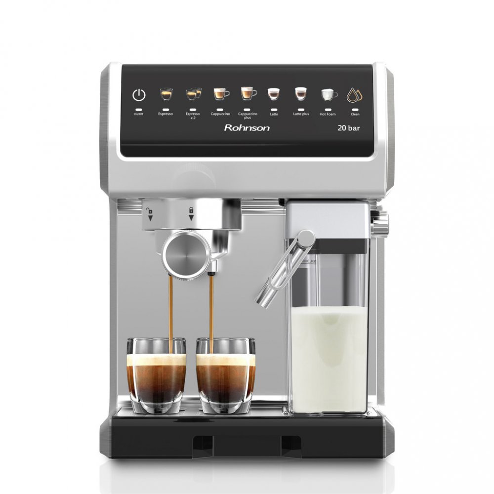 Elegantní pákový kávovar Rohnson R-98080 v luxusním nerezovém provedení přináší baristický zážitek přímo do vaší kuchyně. Díky italskému čerpadlu ULKA s tlakem 20 barů a systému PID pro přesnou kontrolu teploty si vychutnáte kávu s dokonale extrahovaným aroma a sametově jemnou pěnou. Barevný LED dotykový panel zpřehlední celý proces přípravy – od jednoho espressa po silné cappuccino nebo krémové l...