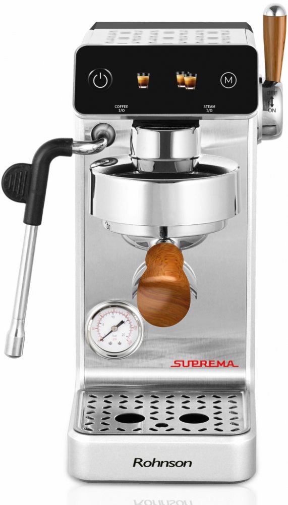 Rohnson 58 mm pro pokročilé dvoukotlový jedna parní tryska nastavitelná elektrické stříbrné kompaktní 2 1.2 l vyjímatelná nádrž manuální 2.0 2700 W 20 bar 6.55 kg 160 × 310 × 310 2 s vyústěním dvojitá výpusť