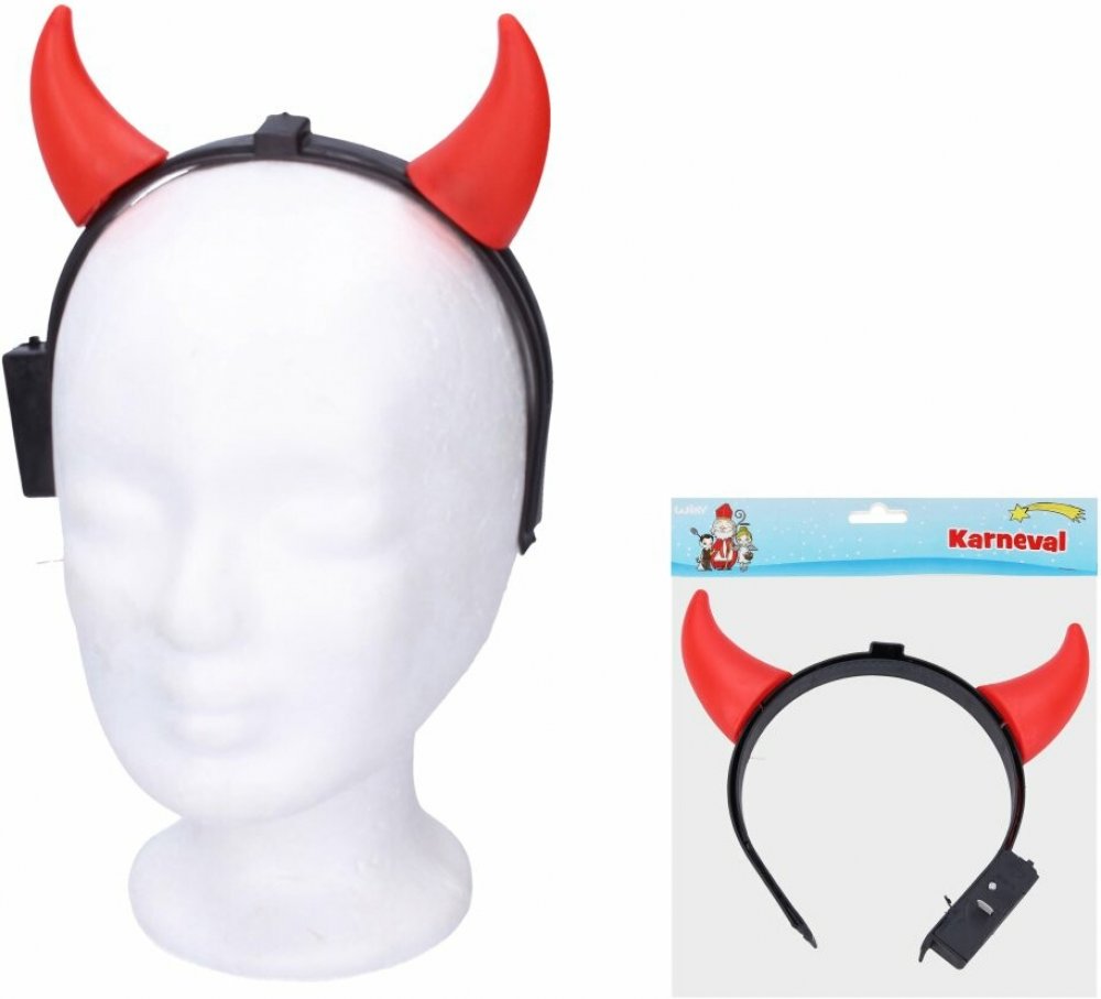 Třpytivé svítící čertovské rohy na pohodlné čelence rozzáří každý kostým – perfektní na karneval, vánoční besídku i mikulášskou nadílku. Blikající efekt dodá zábavu a čelenka skvěle drží dětem od 3 let.Udělejte z každé party nezapomenutelnou show se svítícími čertovskými rohy, které upoutají pozornost třpytem i blikáním. Tento stylový karnevalový doplněk se hodí na kostýmní večírky, školní besídky...