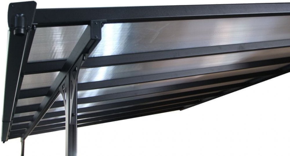 Stabilní a robustní konstrukce z hliníkových profilů a 6 mm silného polykarbonátu se 100% UV ochranou a dlouhodobou životností.