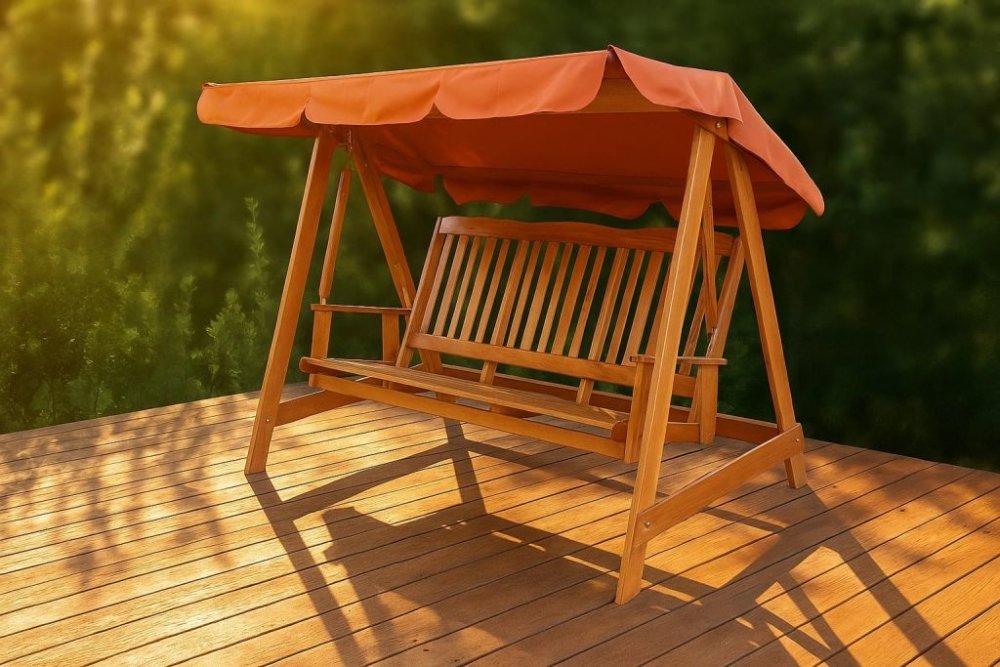 Zahradní houpačka z lakovaného borovicového dřeva s oranžovou stříškou. Má vynikající zpracování a použité spojovací kování zajišťují dlouhodobou funkčnost i pevnost výrobku. Obsahuje FSC certifikace - zaručuje kvalitu materiálu.