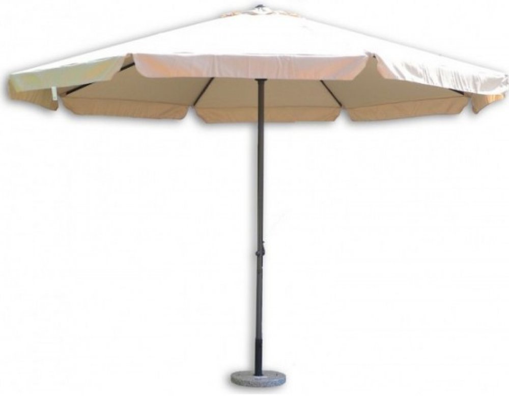 Jednoduchý pěkný slunečník o průměru 3m, bez naklápění, se střapcem. Bez podstavce.