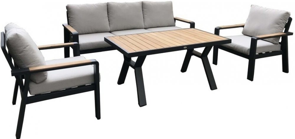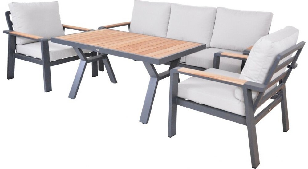 Rojaplast 79 kg jídelní sestavy kovové kov + dřevo 5 s obdélníkovým stolem snadná údržba stůl + 2 křesla + pohovka práškové lakování 138 cm 80 cm 65 cm 82 cm 83 cm 150 kg