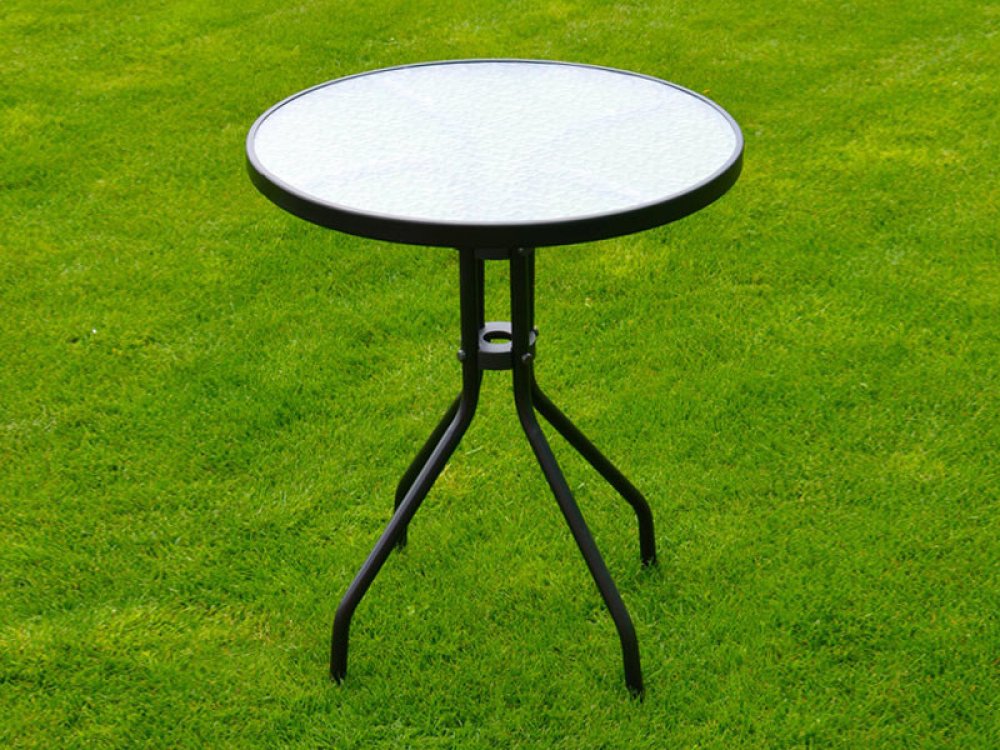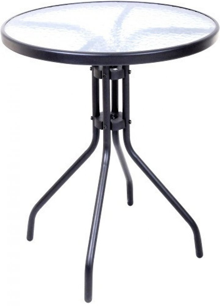 Kovový kulatý stůl Gemini v černé barvě se skleněnou deskou. Tento zahradní stůl o průměru 60 cm a výšce 70 cm je doplněn skleněnou horní deskou, což vytváří velmi elegantní celkový dojem. Síla skla je 5 mm, takže stolek je vhodný na zahradu, terasu nebo také do kavárny.