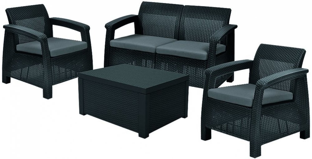 Souprava Corfu je pohodlné a moderní posezení jak ven, tak do interiéru. Souprava je vyrobena z lisovaného plastu v imitaci plochého ratanu. Set je doplněn o podušky v šedé barvě, které zajistí ještě větší pohodlí. Tato souprava patří k nejprodávanějším v této kategorii!
