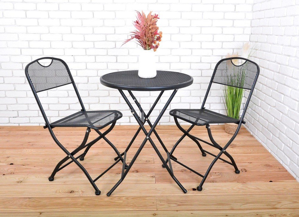Skládací kovový zahradní stůl s drátěnou vrchní deskou. Výborně se kombinuje se všemi typy kovového zahradního nábytku. Je lehce udržovatelný a omyvatelný.