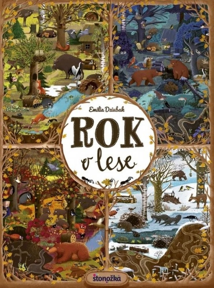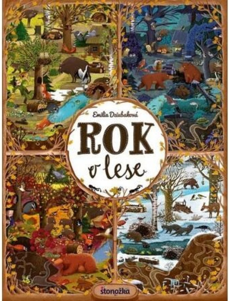 Rok v lese predstaví malému čitateľovi les s jeho obyvateľmi v každom mesiaci v roku – rovnaký záber môže sledovať v rôznych situáciách, za rozličného počasia, cez deň alebo v noci. Na začiatku knihy sa predstavia všetci lesní hrdinovia, v závere čaká čitateľov interaktívna hra. Spoznajte zvyky našich najznámejších lesných zvierat. Kto kde býva? Kto spí cez deň a kto v noci? Kto má koho rád a kto čo rád jedáva? Ako sa zvieratká pripravujú na zimu? Ktoré zvieratá a vtáky žijú spolu celý život a ktoré iba v čase párenia? Kto má najlepšie zásoby a kto je najväčším lesným nezbedníkom? Koho v zime v lese určite nestretnete?Odpovede nájdete na stránkach tejto nezvyčajnej knihy. Rok v lese podnecuje detskú fantáziu, rozvíja vnímavosť, schopnosť logicky myslieť a hľadať súvislosti a rozprávať, ale predovšetkým zaručuje zábavu na dlhé hodiny. Pre deti od troch rokov.