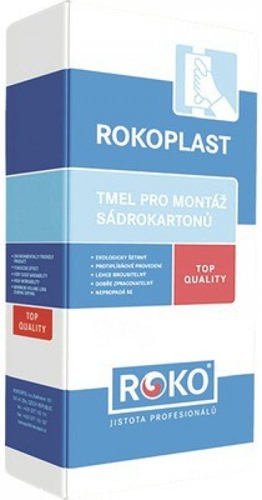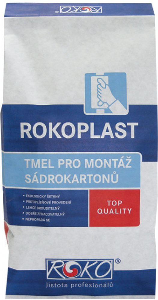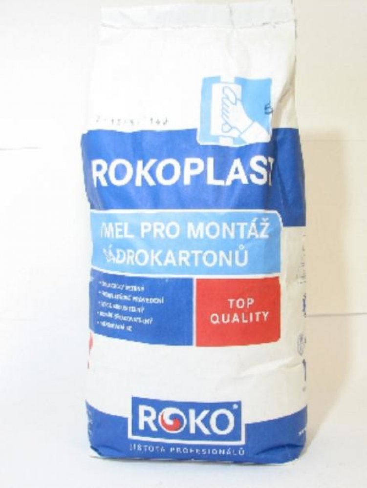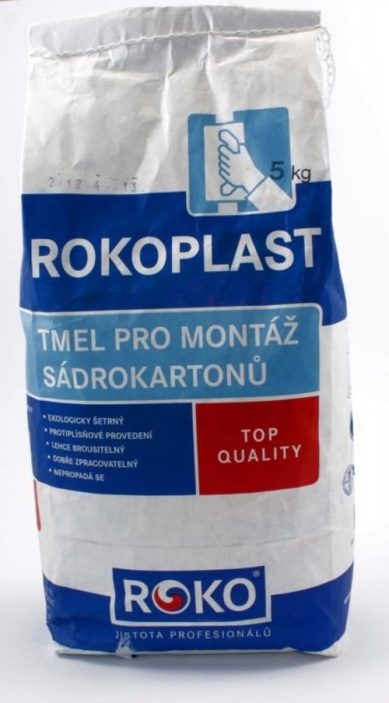 Optimální množství tmelu se připraví smícháním 1 l vody a 2,5 kg Rokoplastu.