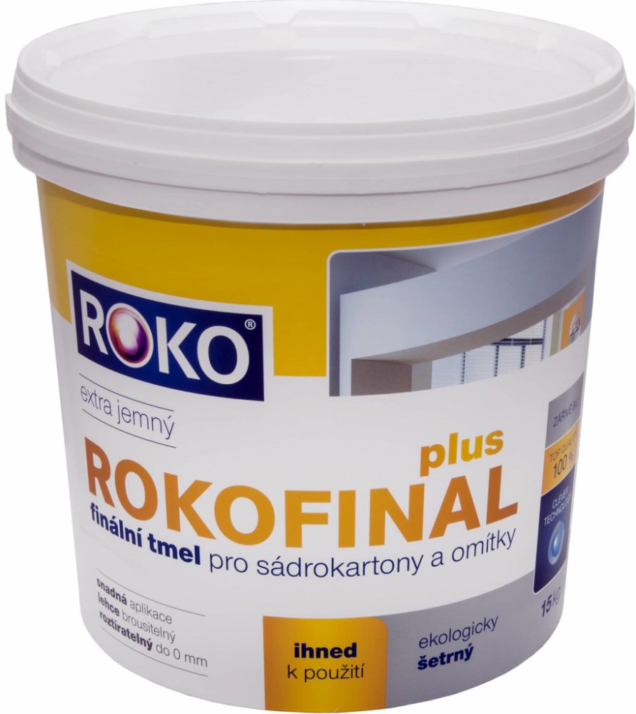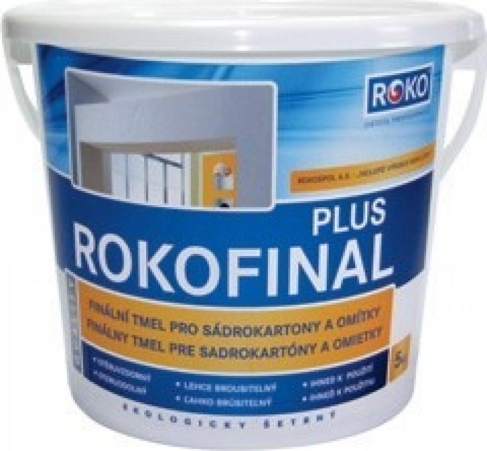 Rokofinal je určen pro povrchovou úpravu tmele Rokoplast (Profitmel, Rokoplast Rapid, Rokotmel) a zhotovení tenkovrstvých finálních úprav jádrových omítek a sádrokartonu v tloušťce do 1,5 mm.