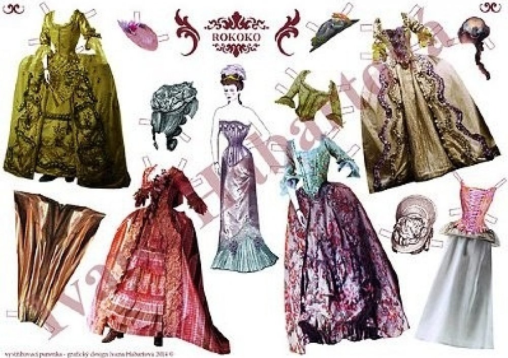 Rokoková vystřihovací panenka