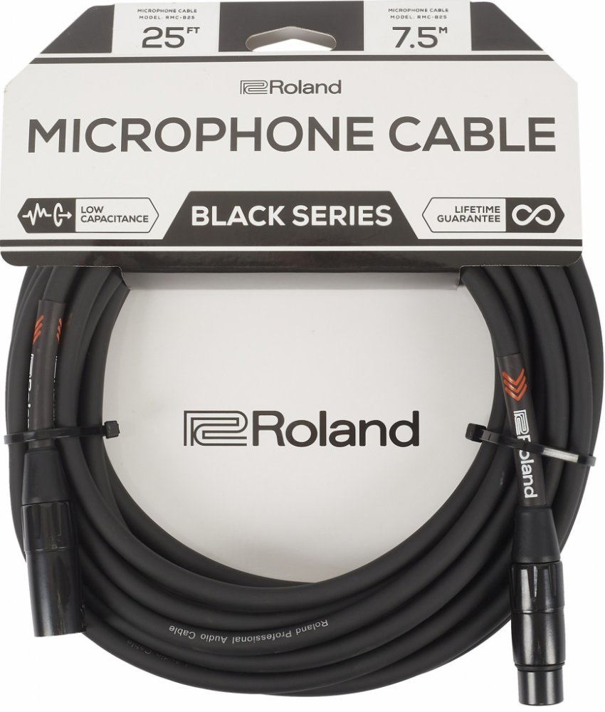Roland RMC-B25 Black Series poskytují profesionální výkon za velmi příznivou cenu. Bezchybný přenos signálu zajišťuje bezkyslíkový měděný drát, jehož jádro je složeno z více vláken. Proti ruchům je chráněn velmi hustým, spirálovým stíněním, které zabraňuje výskytu ruchů a brumů. Samozřejmostí jsou kvalitní konektory a praktický design.